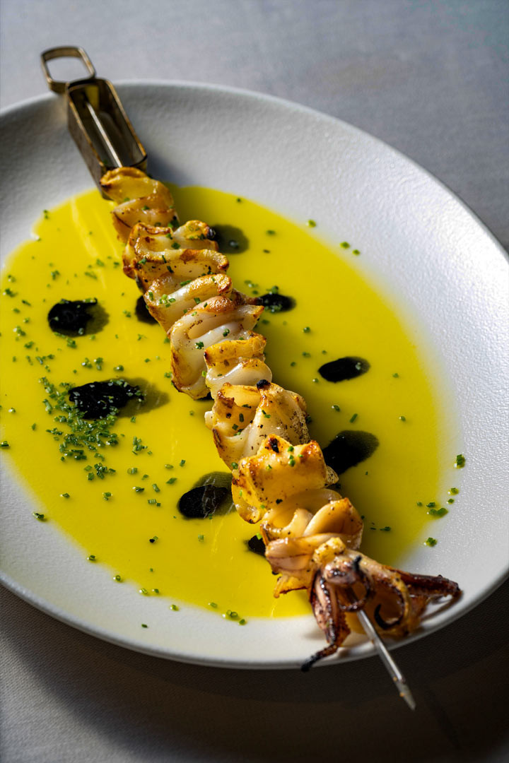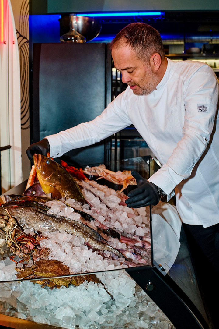 Συνέχισε με κουσκουσάτο με γαρίδα, σάλτσα σαγανάκι και κράκερ γραβιέρας, T-bone τόνου, Σολωμό Wellington, και πιάτα για τη… μέση, όπως το λιγκουίνι με σάλτσα σαμπάνιας και ταρτάρ γαρίδας κοιλάδας, το κοντοσούβλι καλαμάρι και φυσικά, το signature λιαστό χταπόδι.
